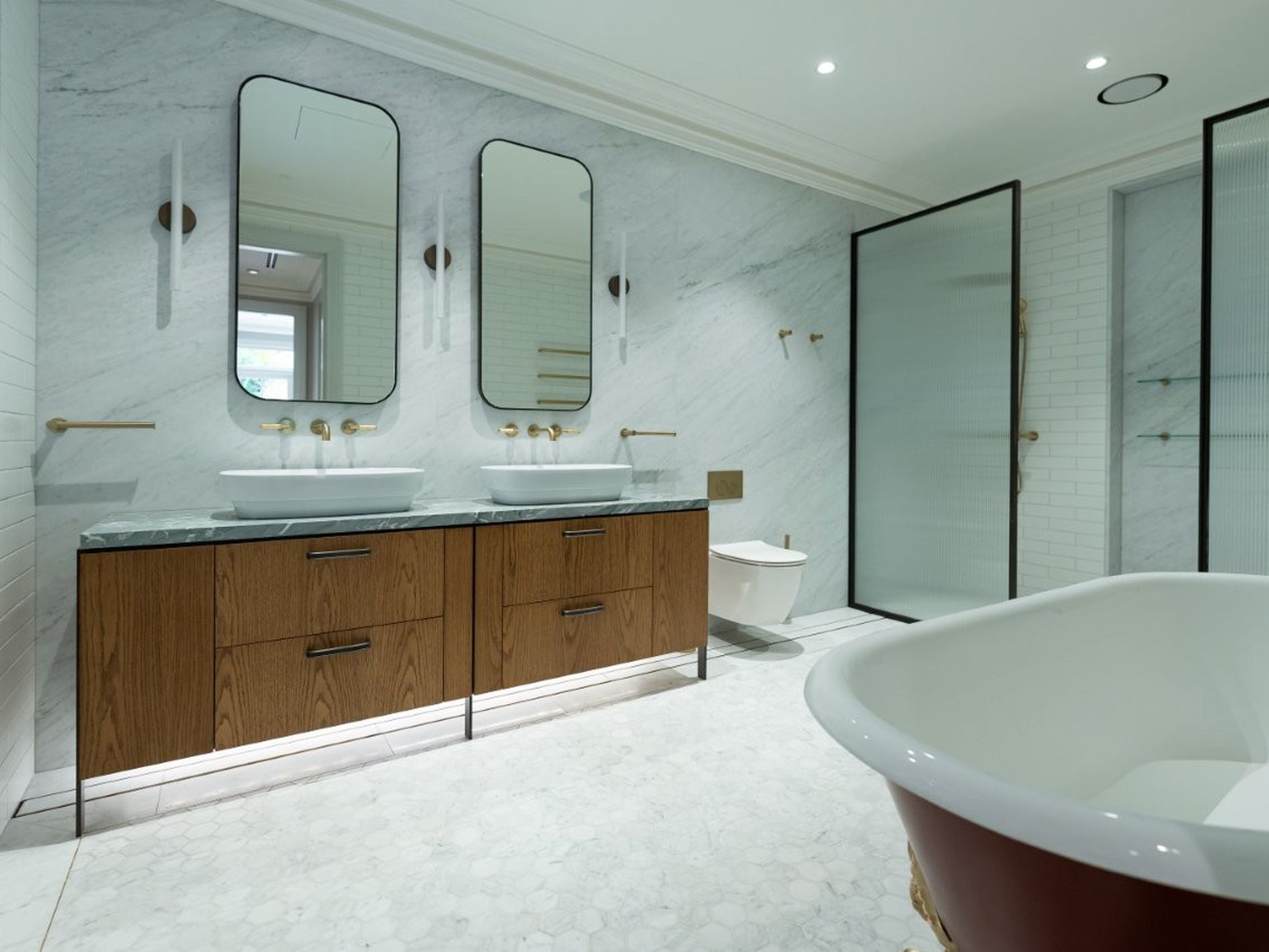 - Enormous ensuite bathroom with double shower and a claw foot bathtub