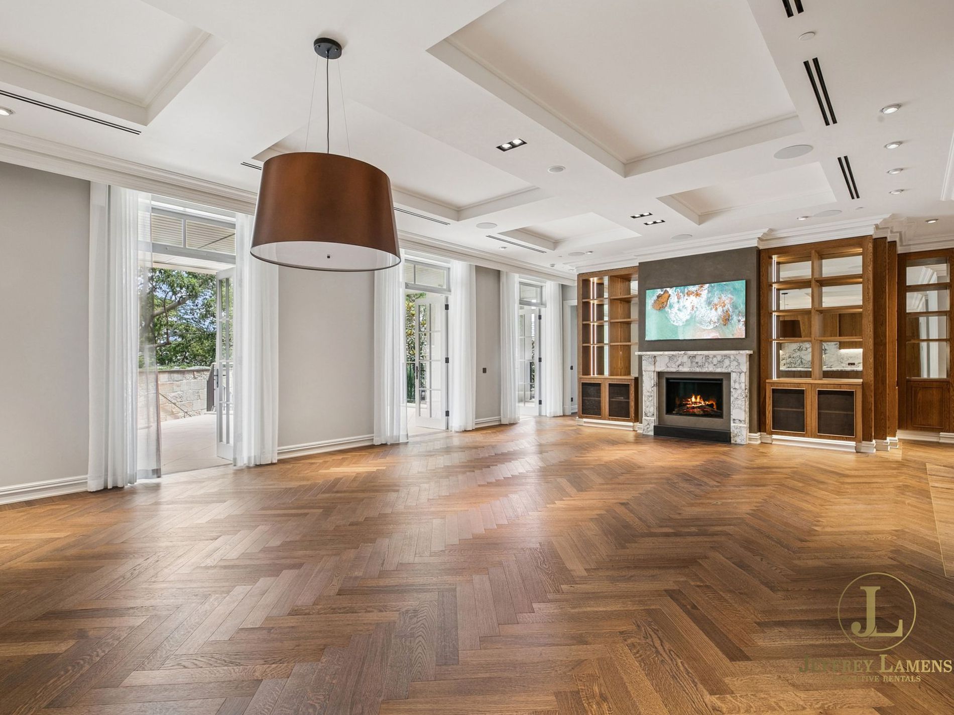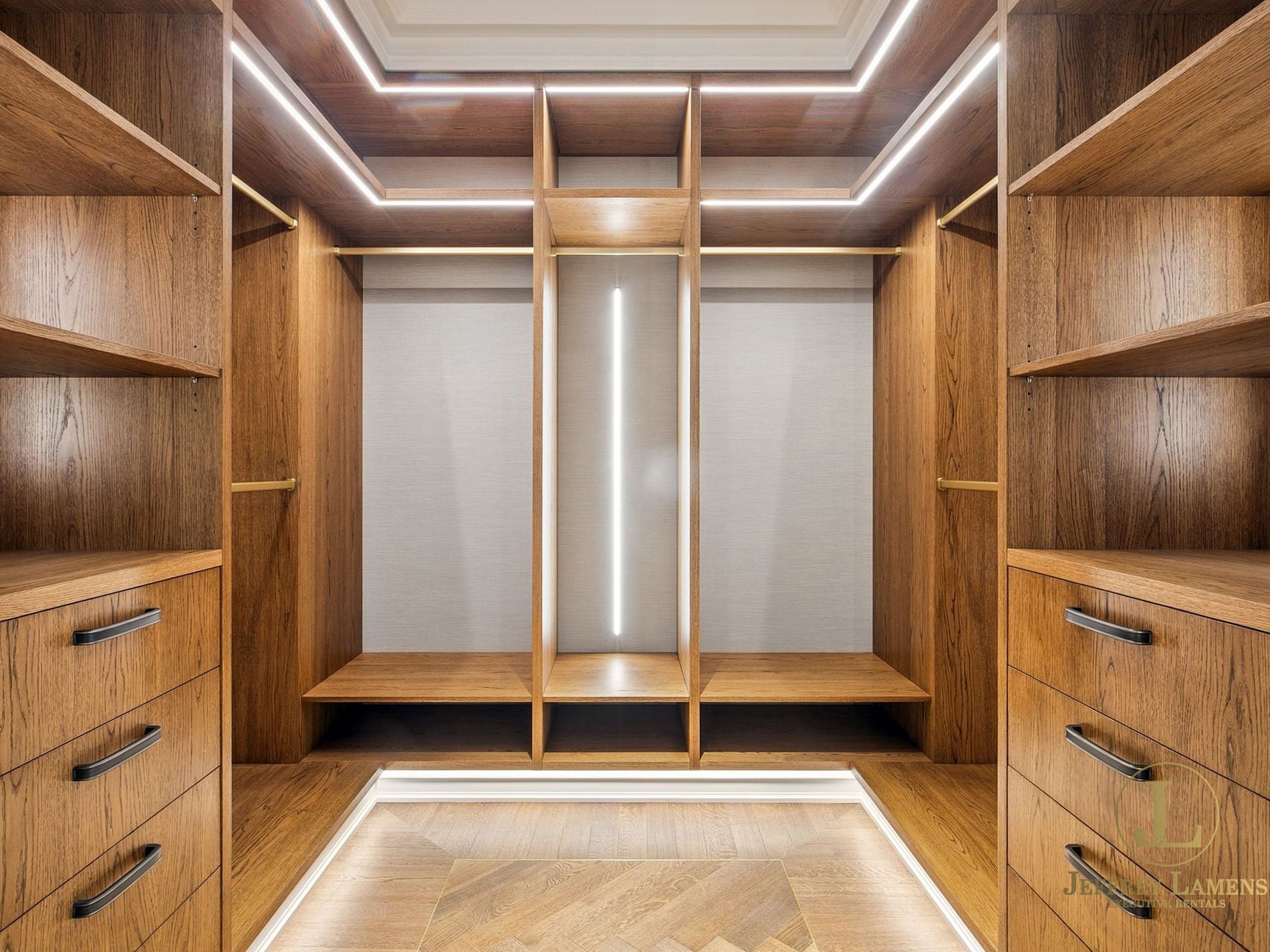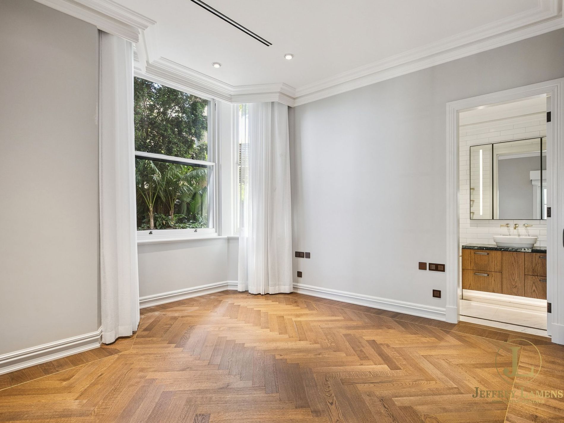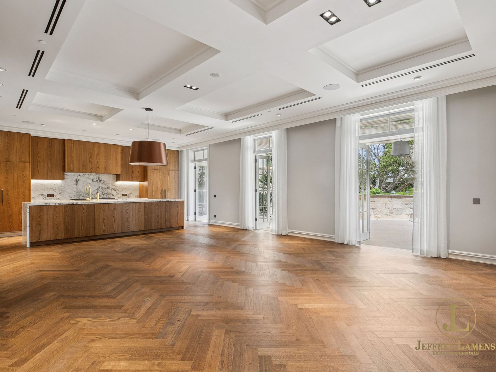 - Soaring ceilings, timber floors, impressive joinery with LED lighting