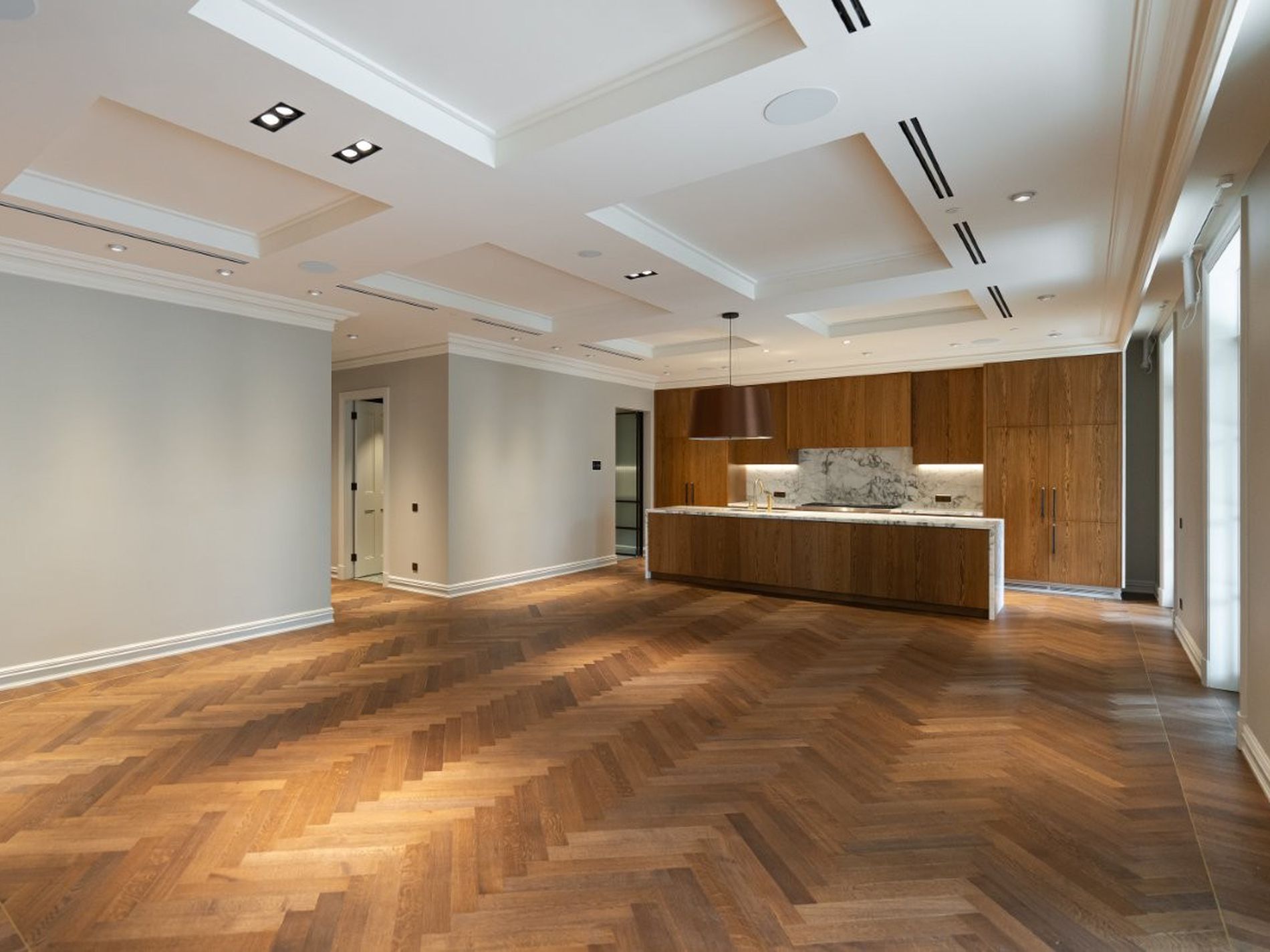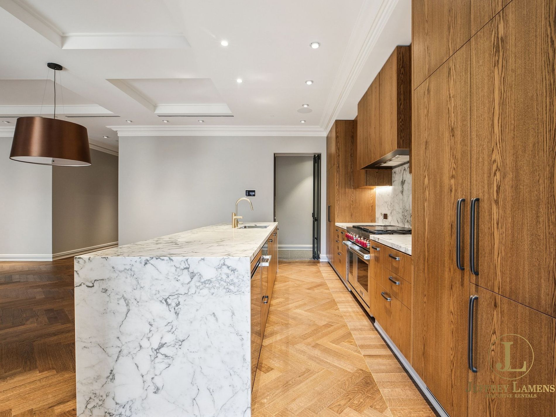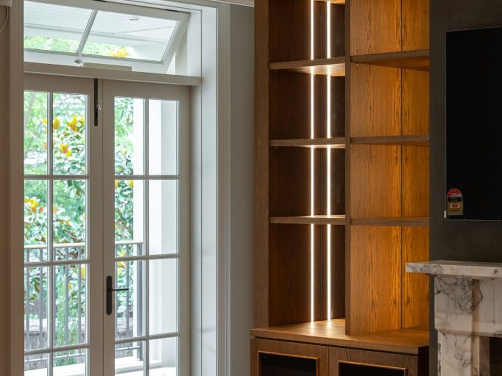 - Soaring ceilings, timber floors, impressive joinery with LED lighting