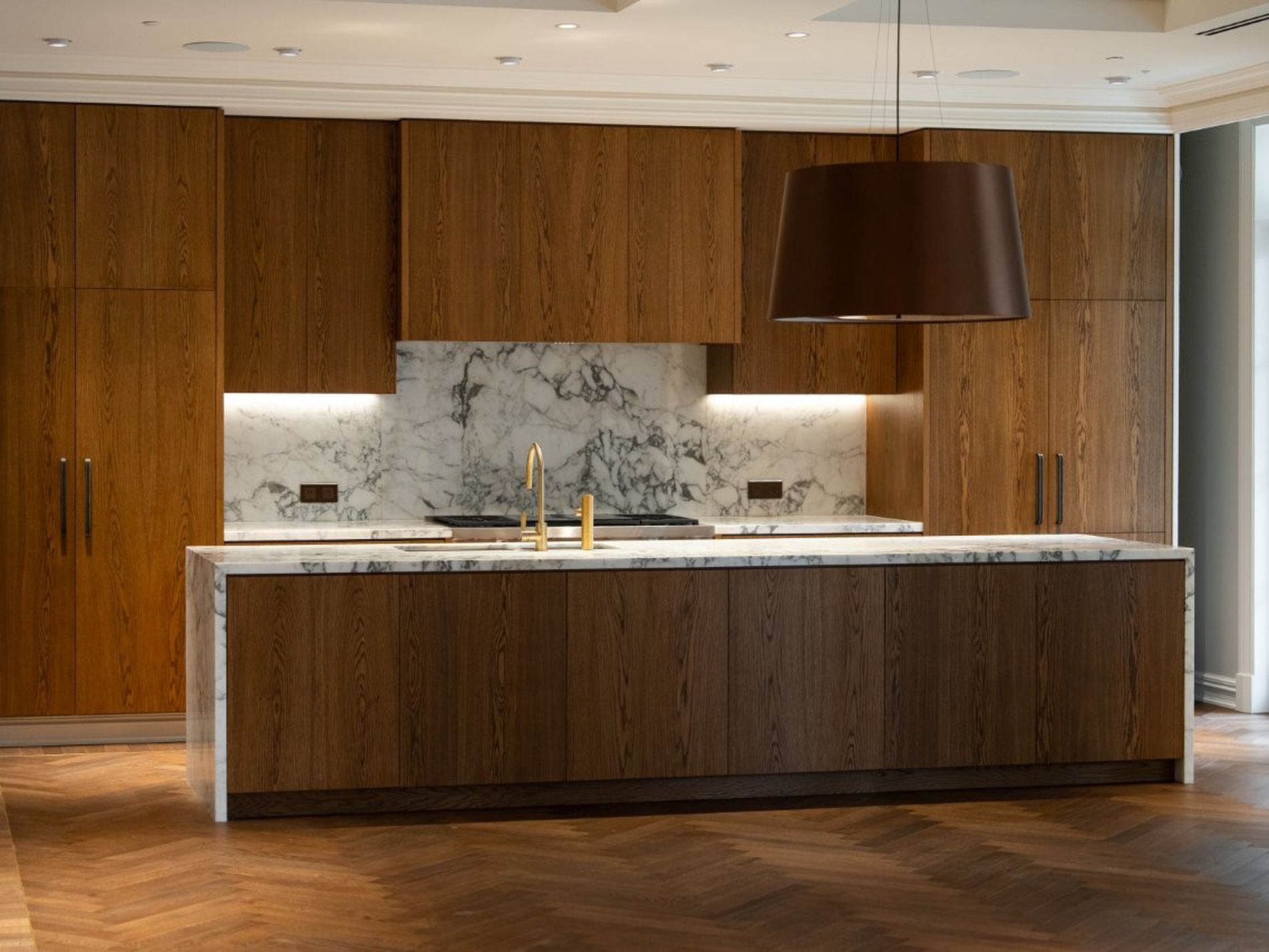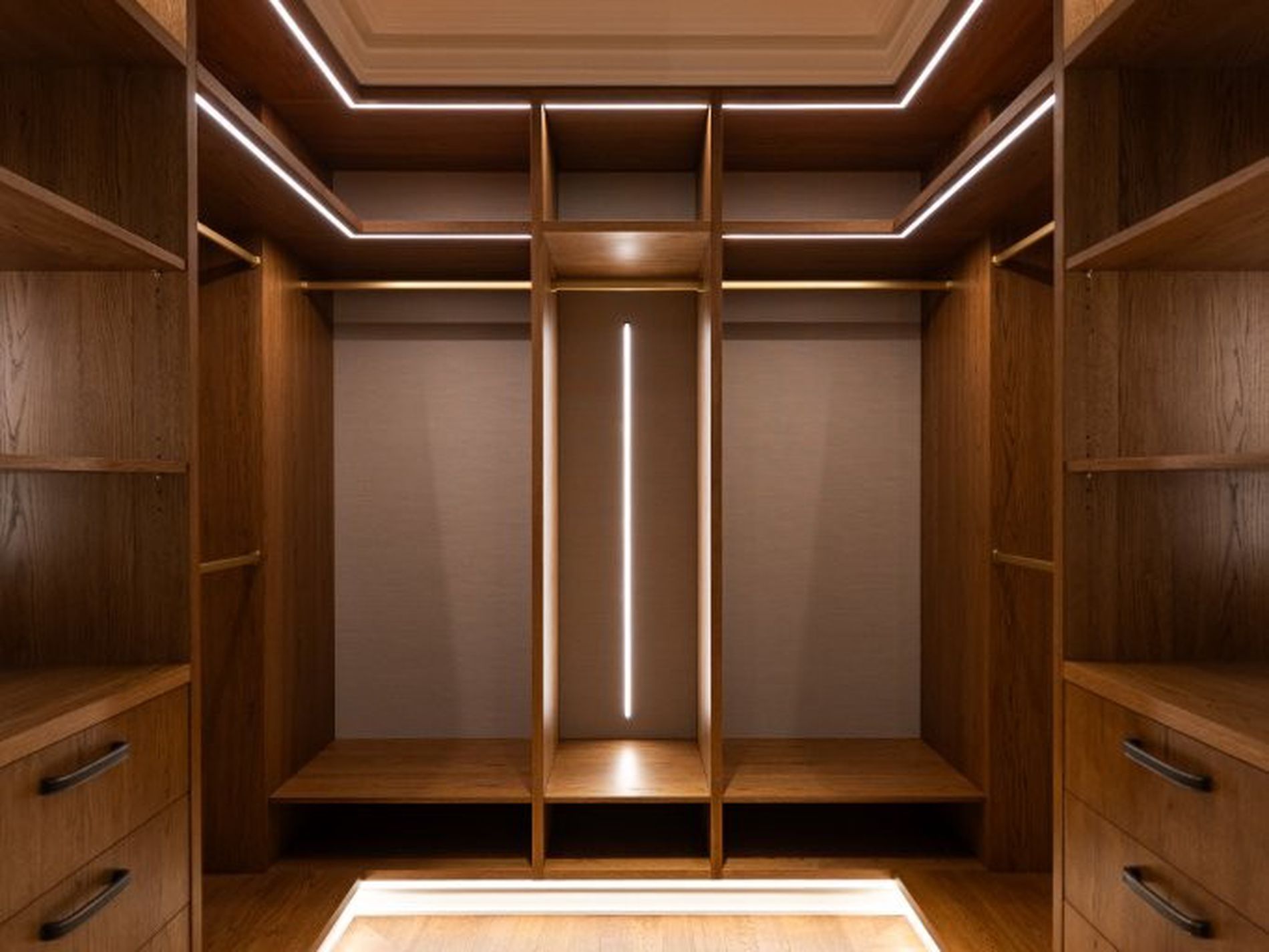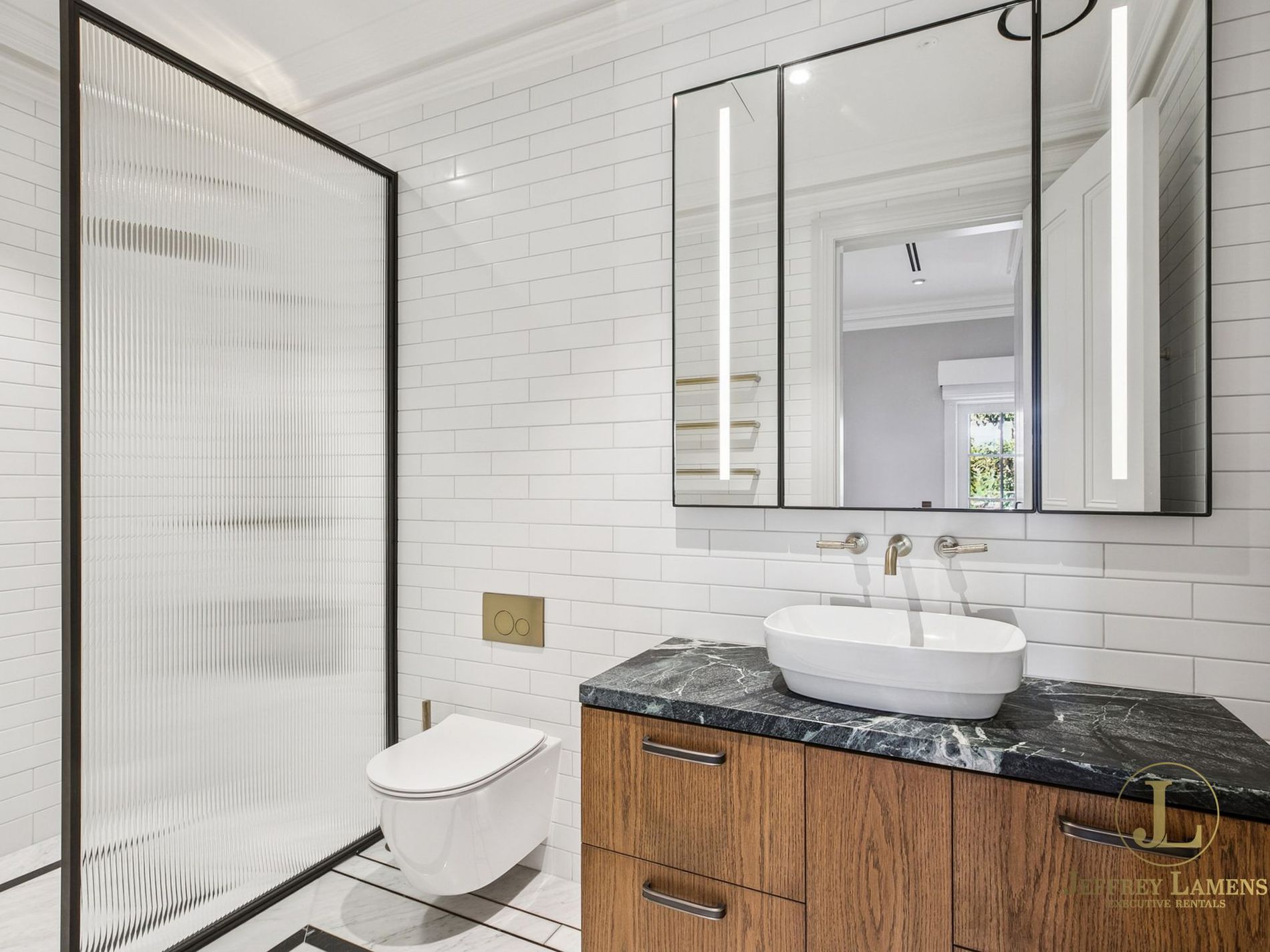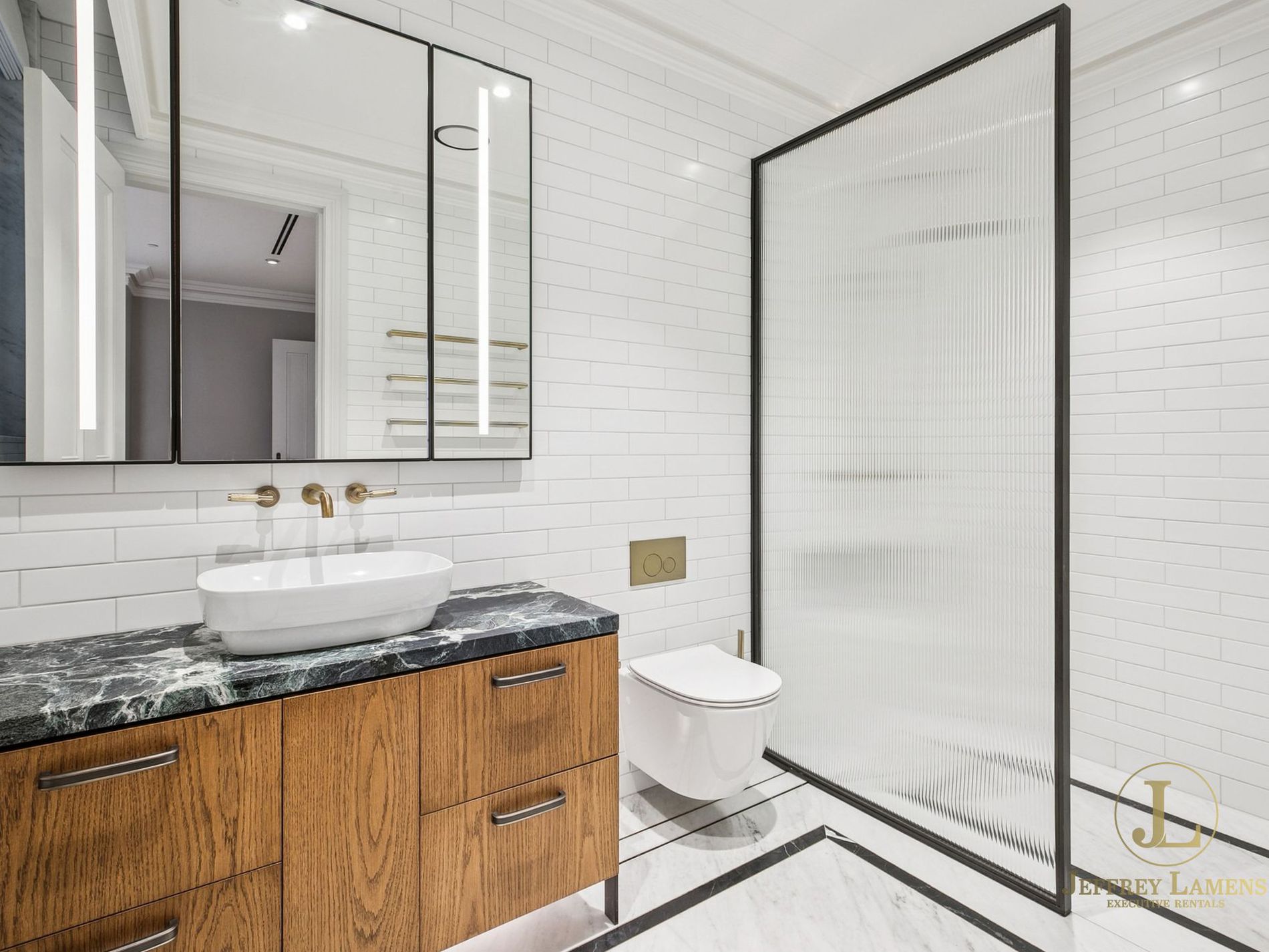 - Soaring ceilings, timber floors, impressive joinery with LED lighting