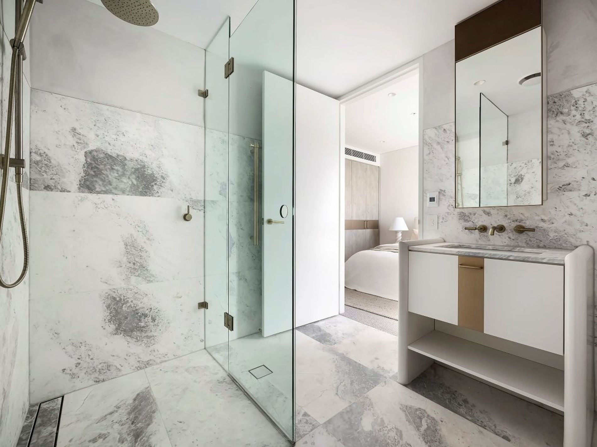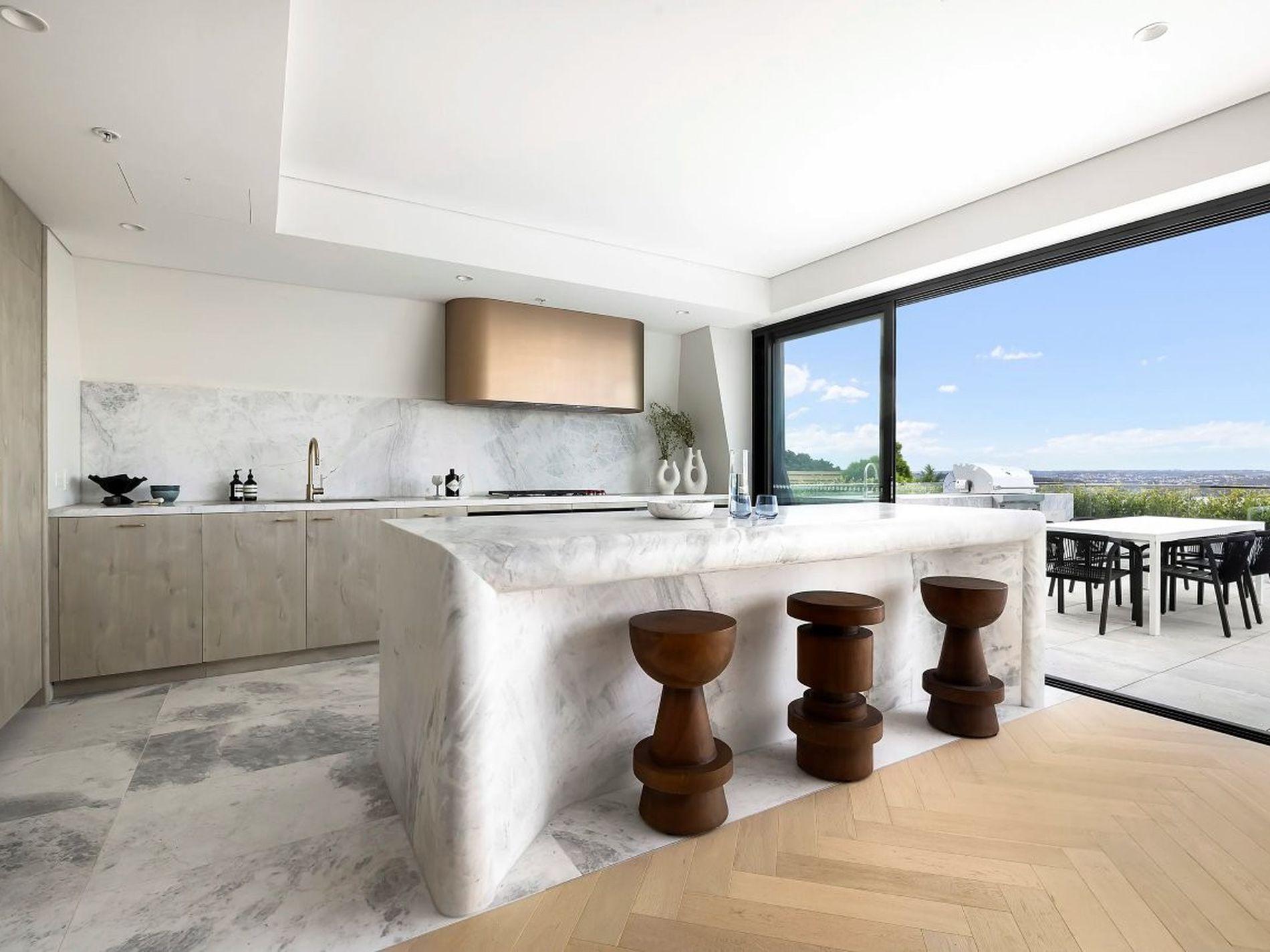 The seamless indoor-outdoor living and expansive layout is designed to indulge and entertain. Open-plan areas flow effortlessly to an exquisite alfresco terrace, perfectly positioned to savour the ever-changing harbour backdrop. A gourmet marble kitchen stands as the centrepiece of the home, appointed with premium Wolf appliances and a full suite of bespoke cabinetry, setting the stage for effortless entertaining or intimate daily living.